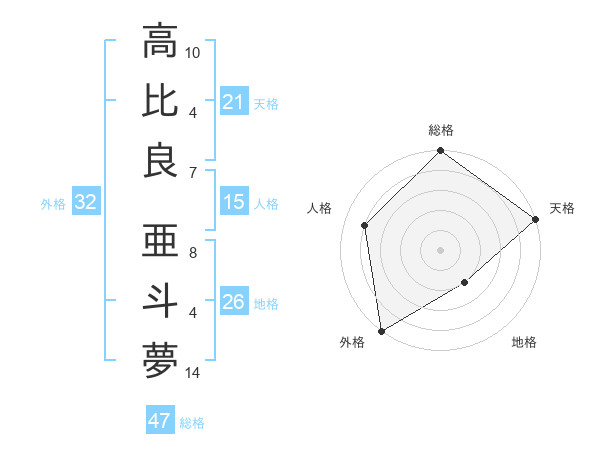 高比良 亜斗夢さんの天格は21画の5点!
