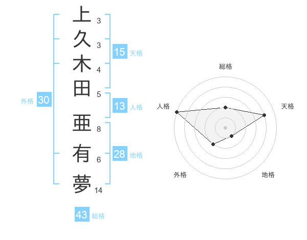 上久木田 亜有夢さんの天格は15画の4点!