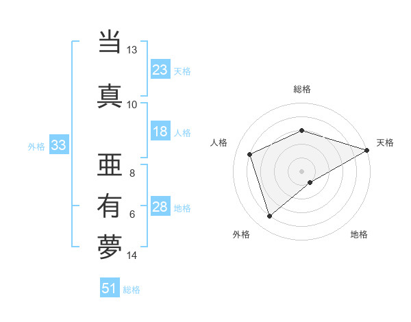 当真 亜有夢さんを姓名の画数から五運を鑑定