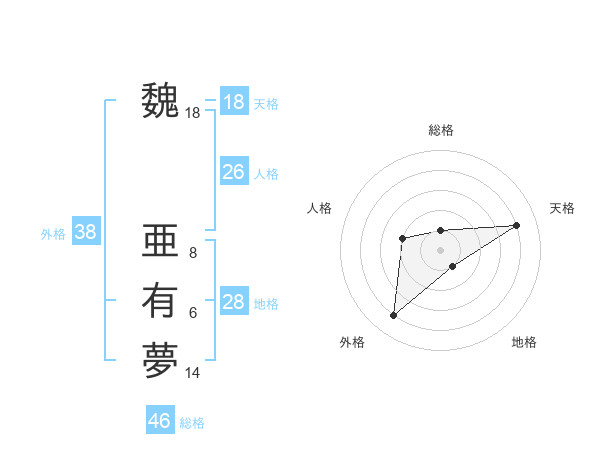 魏 亜有夢さんの天格は18画の4点!