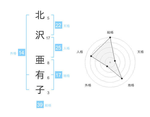 北沢 亜有子さんを姓名の画数から五運を鑑定