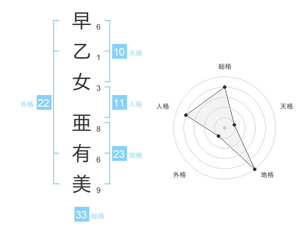 早乙女 亜有美さんの総格は33画の4点!