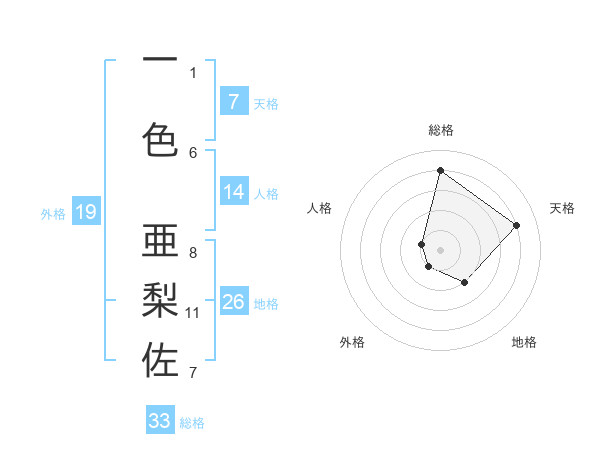 一色 亜梨佐さんを姓名の画数から五運を鑑定