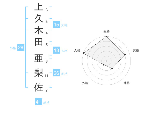 上久木田 亜梨佐さんを姓名の画数から五運を鑑定