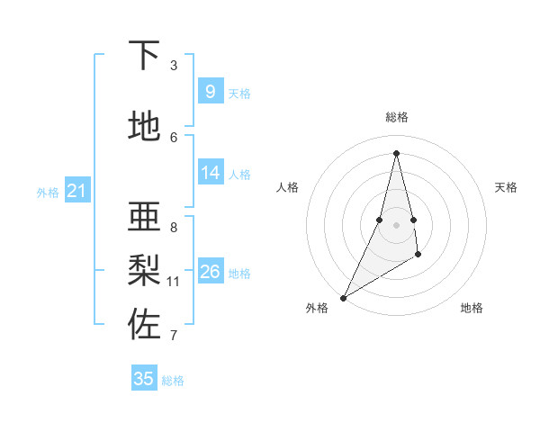 下地 亜梨佐さんの総格は35画の4点!
