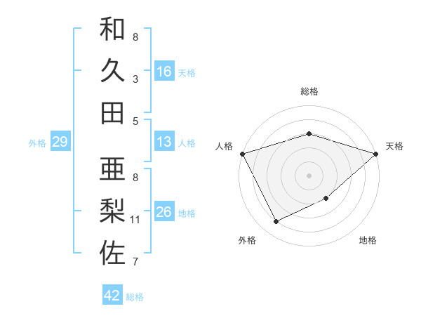 和久田 亜梨佐さんを姓名の画数から五運を鑑定