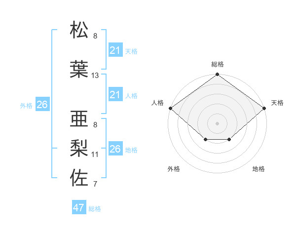 松葉 亜梨佐さんの天格は21画の5点!