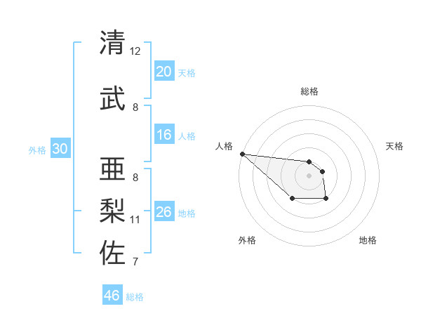 清武 亜梨佐さんの天格は20画の1点!