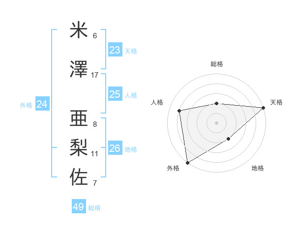 米澤 亜梨佐さんを姓名の画数から五運を鑑定