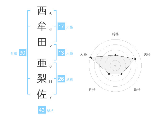 西牟田 亜梨佐さんを姓名の画数から五運を鑑定