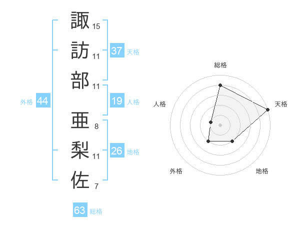 諏訪部 亜梨佐さんの総格は63画の4点!