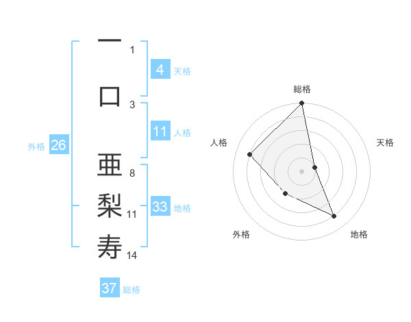 一口 亜梨寿さんを姓名の画数から五運を鑑定
