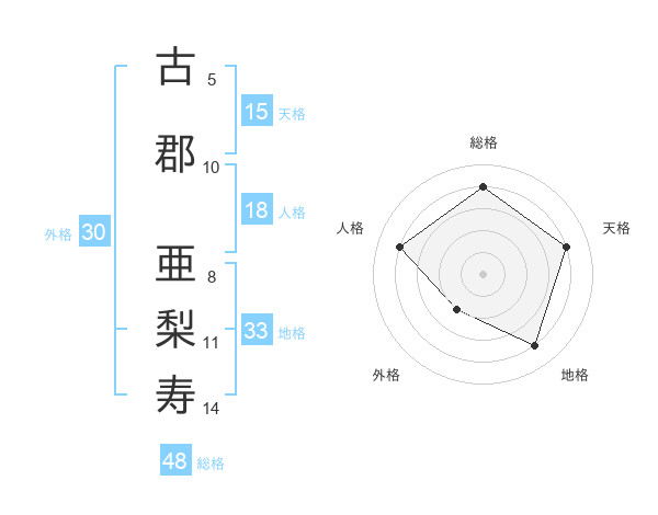 古郡 亜梨寿さんを姓名の画数から五運を鑑定