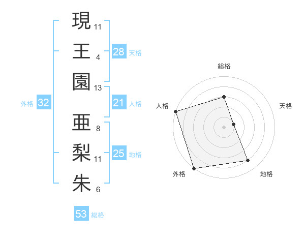 現王園 亜梨朱さんを姓名の画数から五運を鑑定