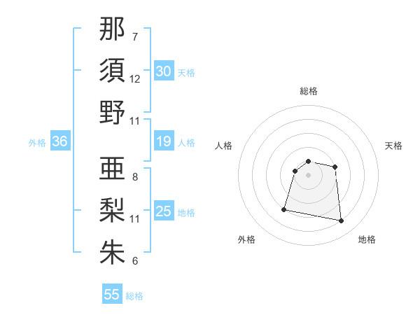 那須野 亜梨朱さんを姓名の画数から五運を鑑定