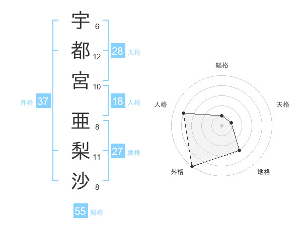 宇都宮 亜梨沙さんの総格は55画の1点!