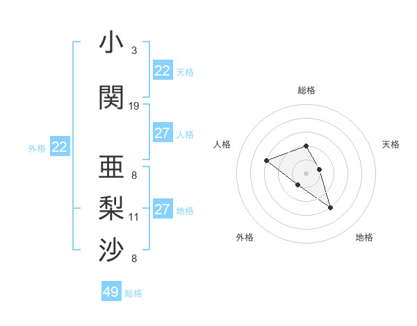 小関 亜梨沙さんを姓名の画数から五運を鑑定