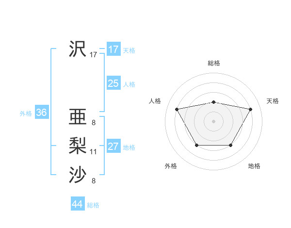 沢 亜梨沙さんの天格は17画の4点!