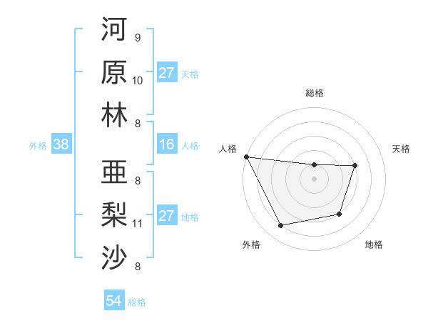 河原林 亜梨沙さんを姓名の画数から五運を鑑定