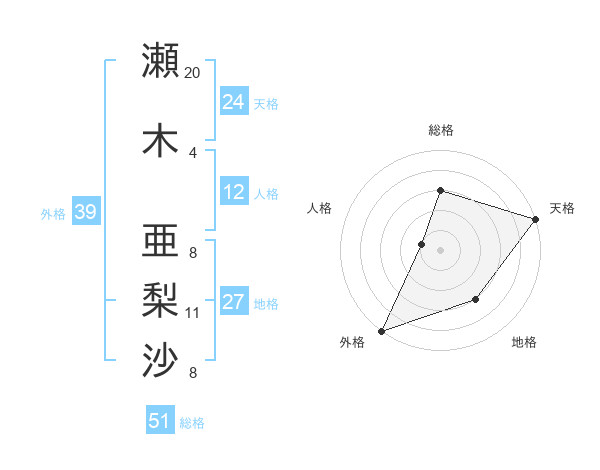 瀬木 亜梨沙さんを姓名の画数から五運を鑑定