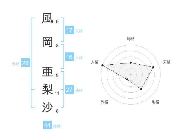 風岡 亜梨沙さんの総格は44画の2点!