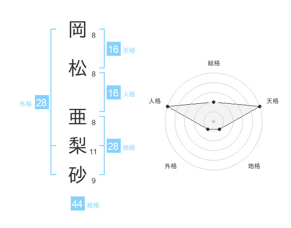 岡松 亜梨砂さんを姓名の画数から五運を鑑定