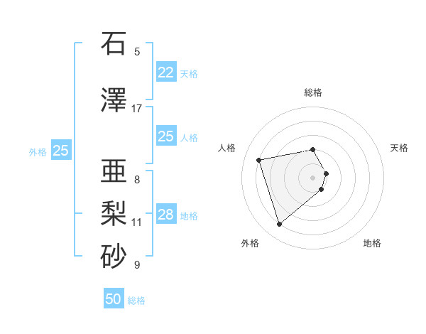石澤 亜梨砂さんを姓名の画数から五運を鑑定
