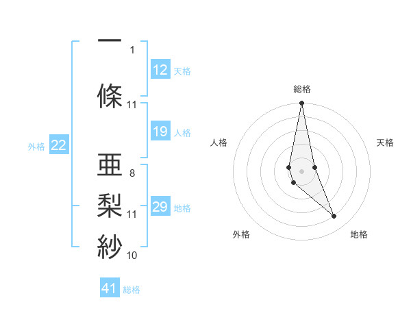一條 亜梨紗さんを姓名の画数から五運を鑑定