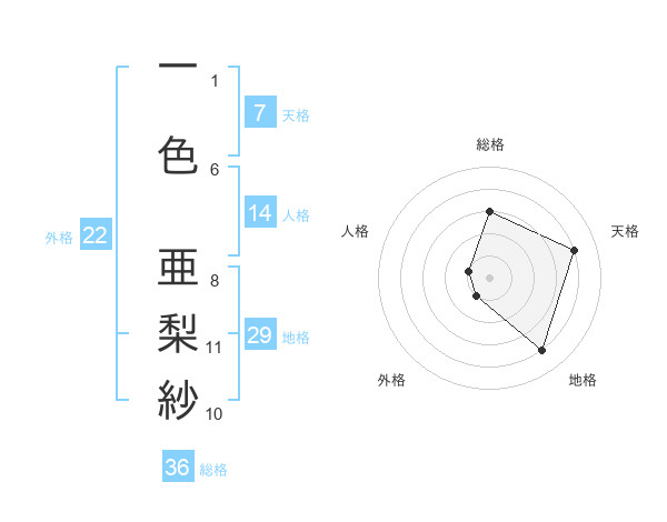 一色 亜梨紗さんの外格は22画の1点!
