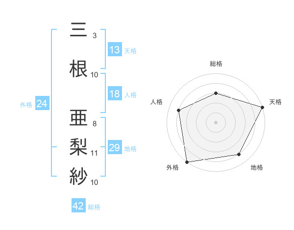 三根 亜梨紗さんを姓名の画数から五運を鑑定