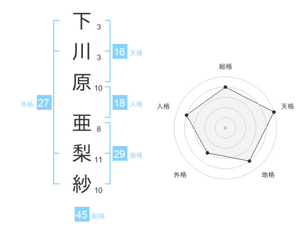下川原 亜梨紗さんの総格は45画の4点!