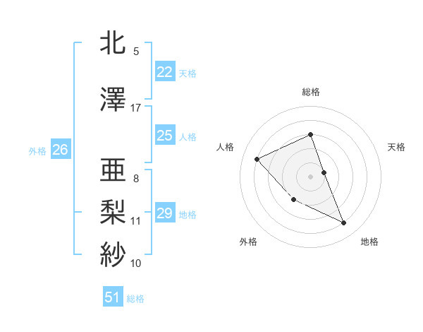 北澤 亜梨紗さんを姓名の画数から五運を鑑定