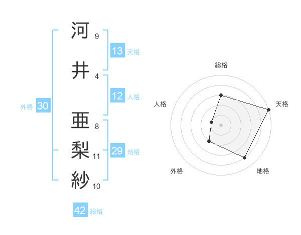 河井 亜梨紗さんの天格は13画の5点!