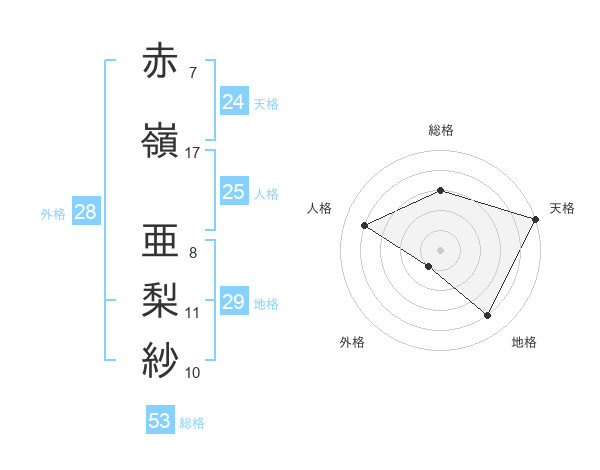 赤嶺 亜梨紗さんの天格は24画の5点!