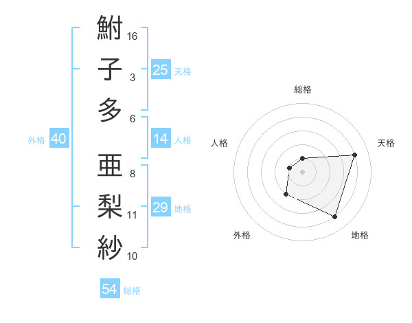 鮒子多 亜梨紗さんを姓名の画数から五運を鑑定