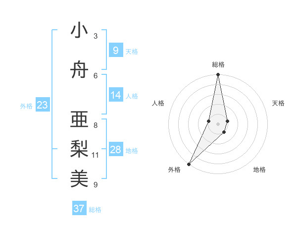 小舟 亜梨美さんの総格は37画の5点!