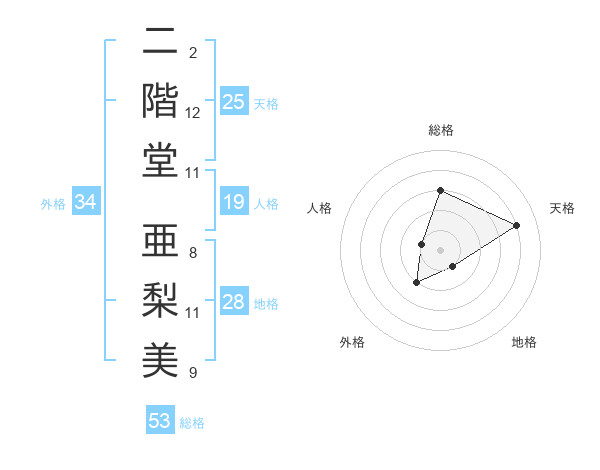 二階堂 亜梨美さんを姓名の画数から五運を鑑定