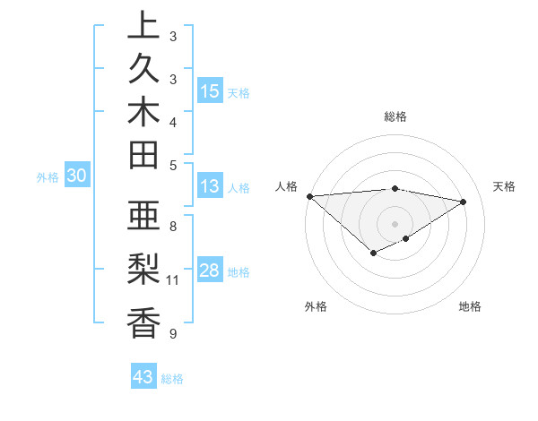上久木田 亜梨香さんの天格は15画の4点!