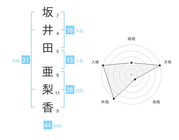 坂井田 亜梨香さんを姓名の画数から五運を鑑定
