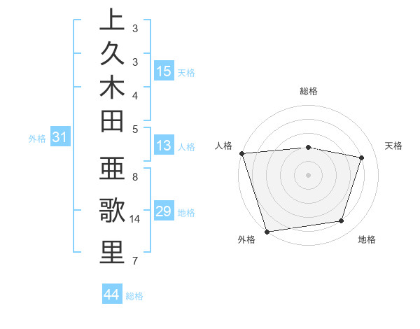 上久木田 亜歌里さんを姓名の画数から五運を鑑定