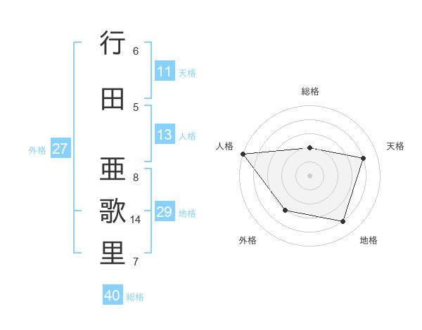 行田 亜歌里さんを姓名の画数から五運を鑑定
