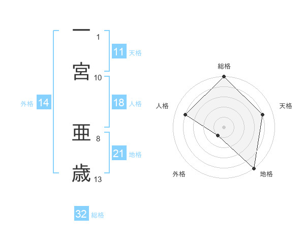一宮 亜歳さんの総格は32画の5点!