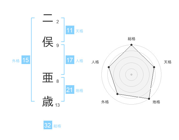 二俣 亜歳さんの天格は11画の4点!