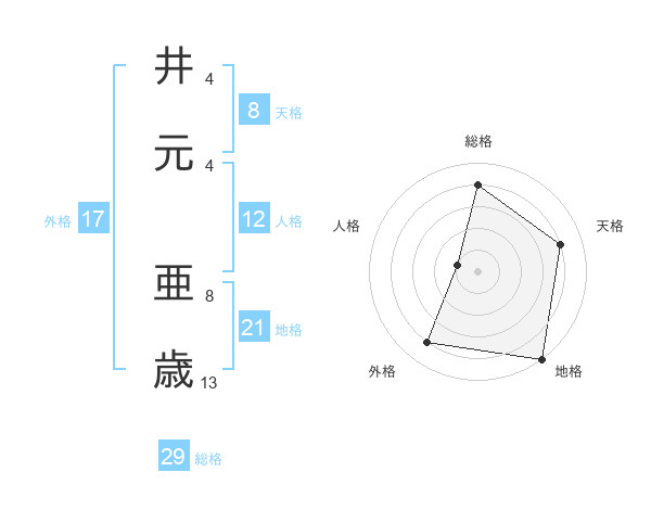 井元 亜歳さんの総格は29画の4点!