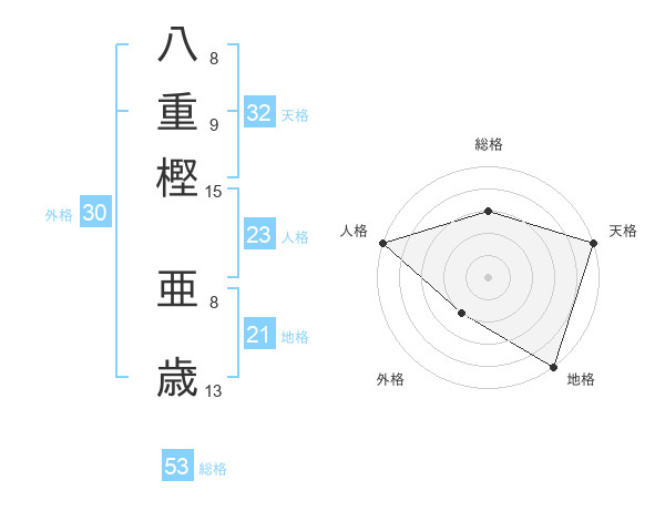八重樫 亜歳さんを姓名の画数から五運を鑑定