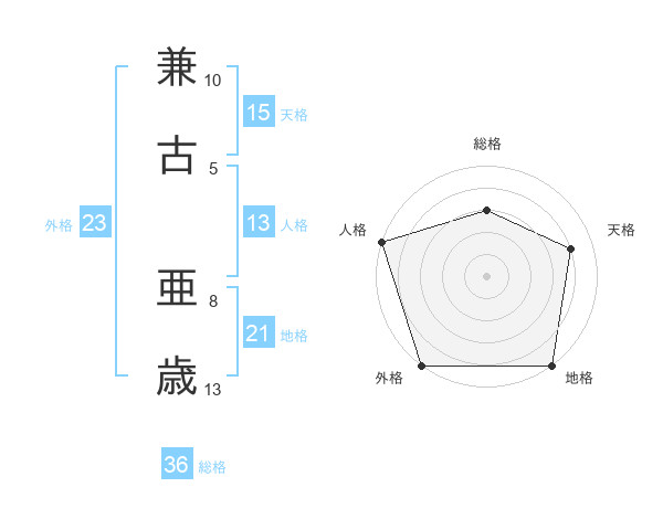 兼古 亜歳さんの外格は23画の5点!