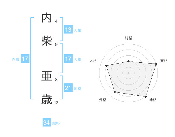 内柴 亜歳さんの総格は34画の2点!