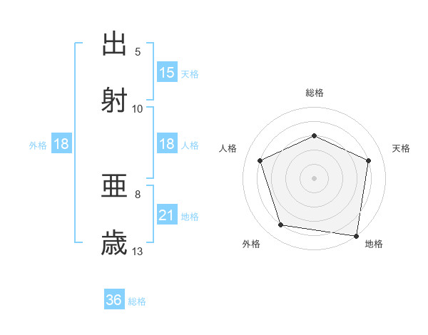 出射 亜歳さんの外格は18画の4点!