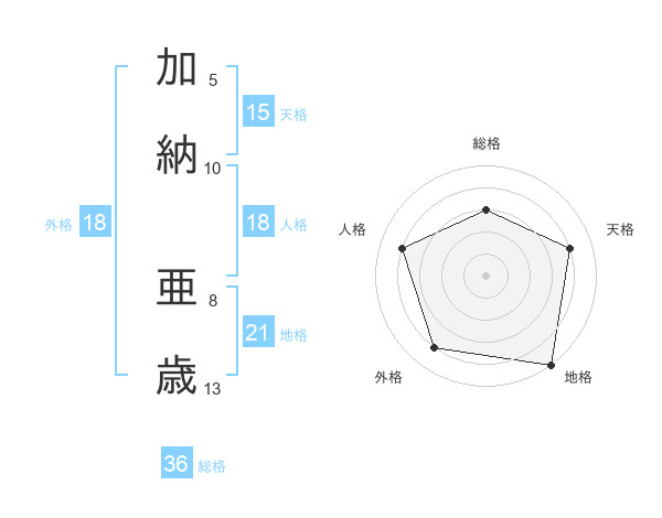 加納 亜歳さんの地格は21画の5点!