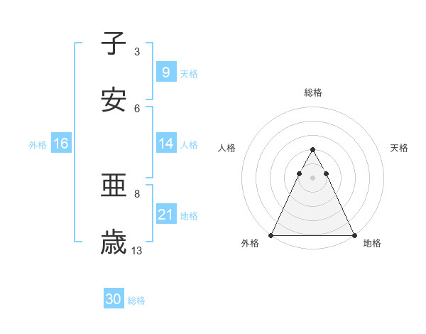 子安 亜歳さんの総格は30画の2点!
